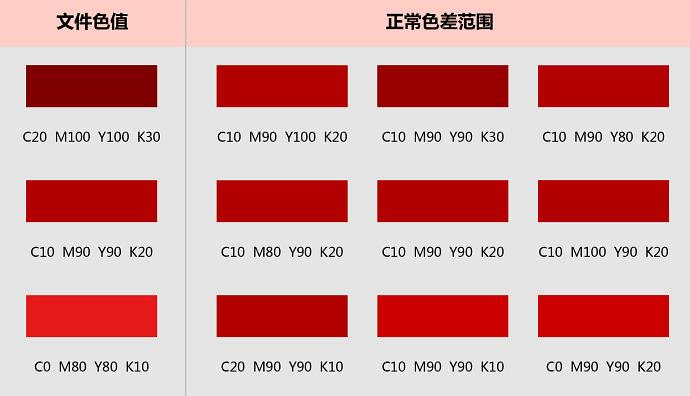 根据印刷行业的成品验收标准规定,C.M.Y.K各值误差控制在上下10%以内,对照色谱在此标准内的色彩偏差将被视为正常范围。