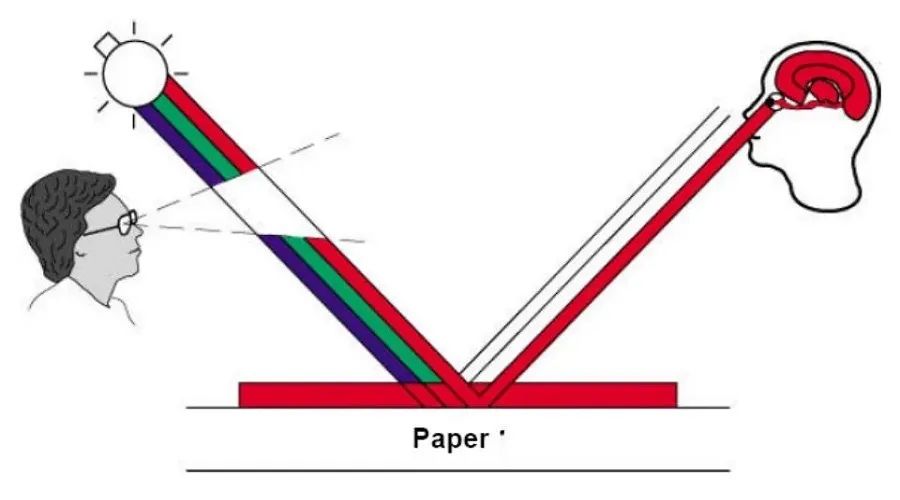 在同一种光线条件下,我们会看到同一种景物的不同部分具有各种不同的色彩,这是因为物体的表面具有不同的吸收光线与反射光线的能力,反射光不同,眼睛就会看到不同的色彩。因此,色彩的发生,是光线对人的视觉和大脑发生作用的结果,是一种人体器官的知觉。