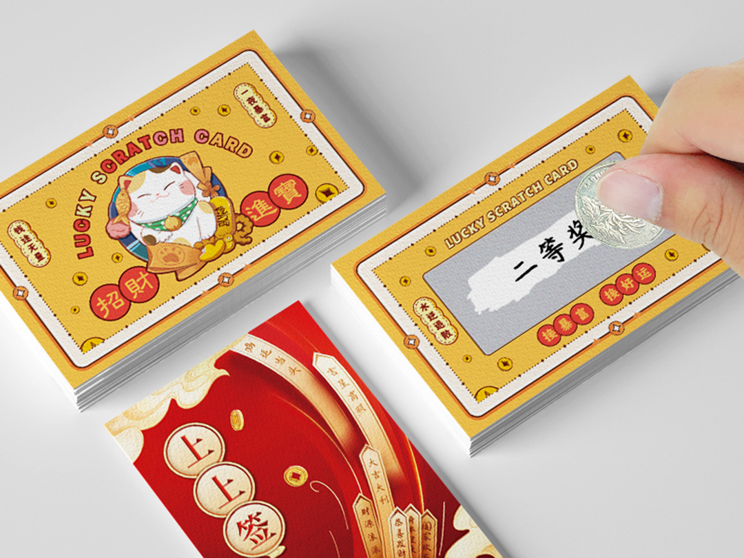 常用场景:抽奖式 | 可变码 | 丝印 | 通版 + 常用材质:250g铜版纸 | 350g白滑影 | 350g环保白卡 + 常用尺寸:90x54mm | 90x110mm | 100x140mm | 90x160mm +