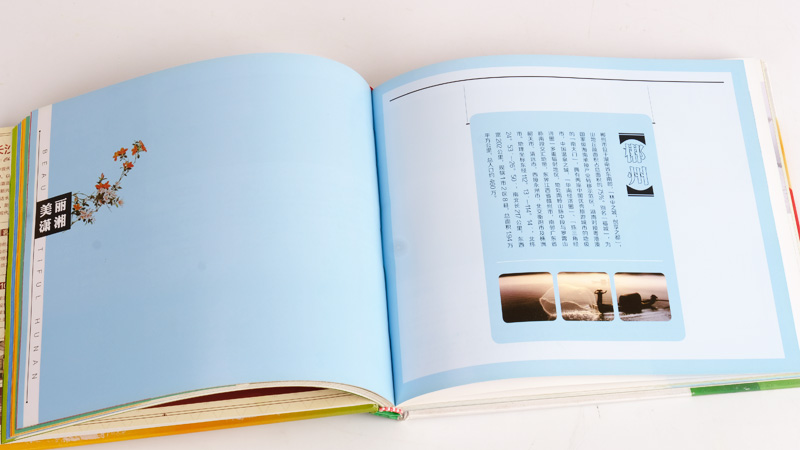 简述:由湖南人民出版社编辑,湖南各地特色景点介绍出版刊物 类型:硬壳精装画册 工艺材质:锁线硬壳精装,封面157克铜版纸覆亚膜裱2.0厚度纸板,内芯157克铜版纸,四色彩印